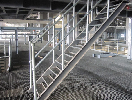 鋼格柵板又叫鋼格板、鋼格柵、格柵板。因地域性差異,北方人習慣稱為鋼格板,南方人習慣叫鋼格柵板。是用扁鋼按照一定的間距和橫桿進行交叉排列,并 且焊接成中間帶有方形格子的一種鋼鐵制品,主要用來做鋼結構走道平臺板,鋼梯的踏步板等.橫桿一般采用麻花鋼制作。應用范圍極其廣泛,一般工廠、車間、礦 業、港口的各類平臺都可選用、美觀氣派,安裝方便,是一種更新換代的新型建筑產品。