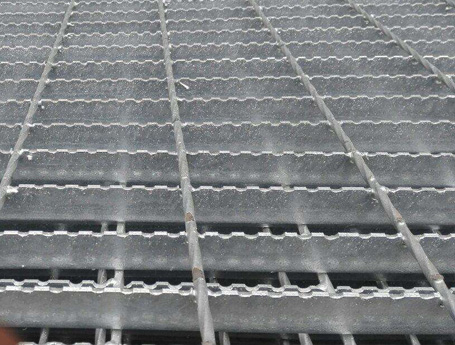 防滑鋼格板原材料:齒型扁鋼(齒形鋼格柵板),材質一般材質是Q235,齒形扁鋼和普通扁鋼的不同之處在于,扁鋼的一側有高低不平齒印,主要在于防滑。
